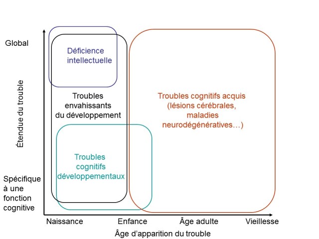 J’ajoute ci-dessous une figure que j’avais faite pour expliciter les liens entre les différents troubles cognitifs, figure qui n’a pas été reprise dans le document final.